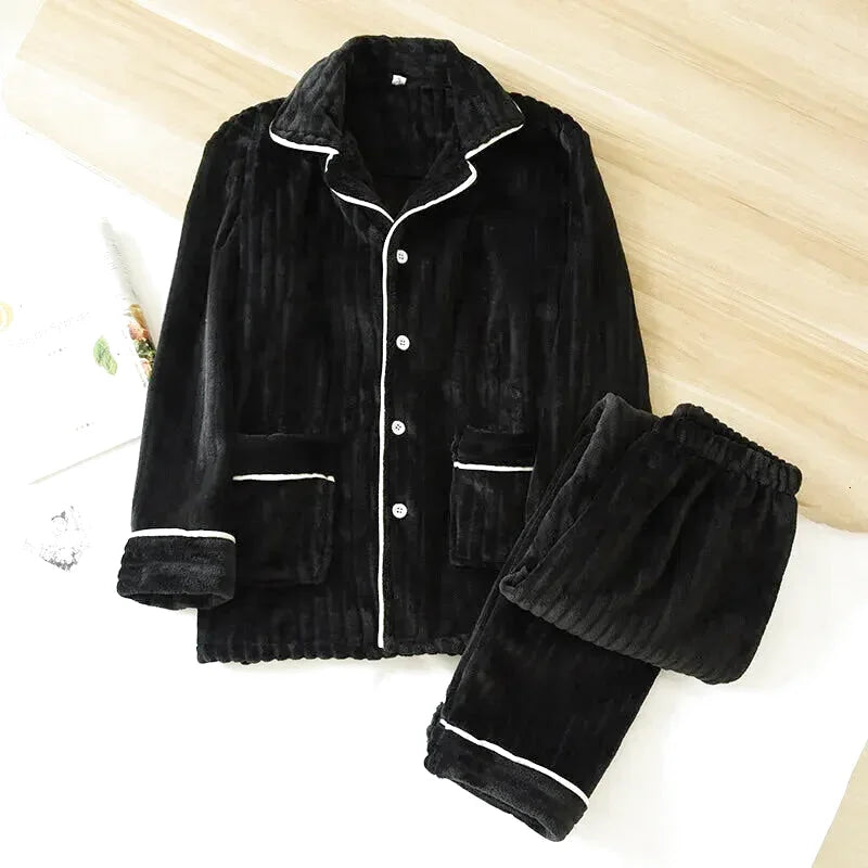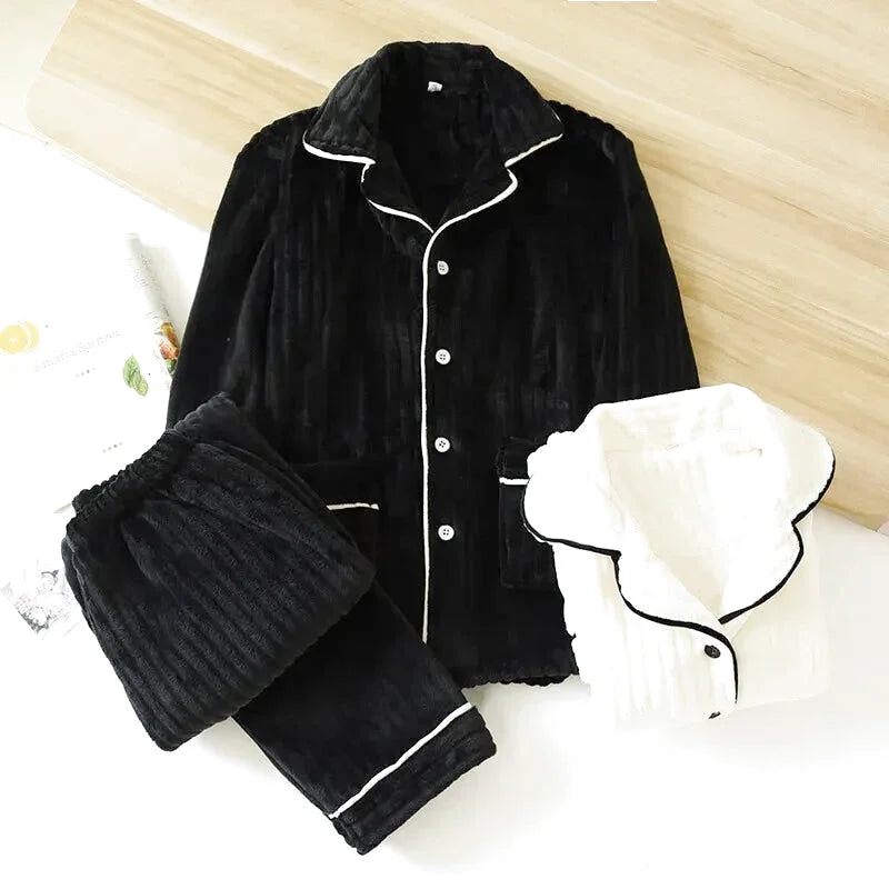 Exit les motifs enfantins et les imprimés trop ! Ces pyjamas couple unis en polaire corail flanelle incarnent le chic décontracté hivernal. Les couleurs solides et sophistiquées créent une harmonie visuelle parfaite - vous êtes coordonnés sans tomber dans le kitsch. C'est la déclaration fashion des couples qui privilégient la qualité et l'élégance intemporelle.