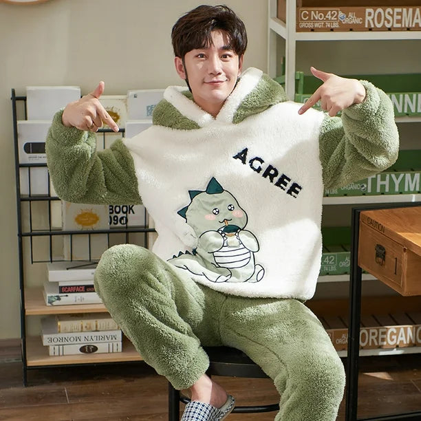 Pyjama homme dinosaure en polaire épaisse flanelle corail. Amusant, ultra-doux et chaud pour l'hiver. Ados et adultes. Idée cadeau originale et confortable 🦕